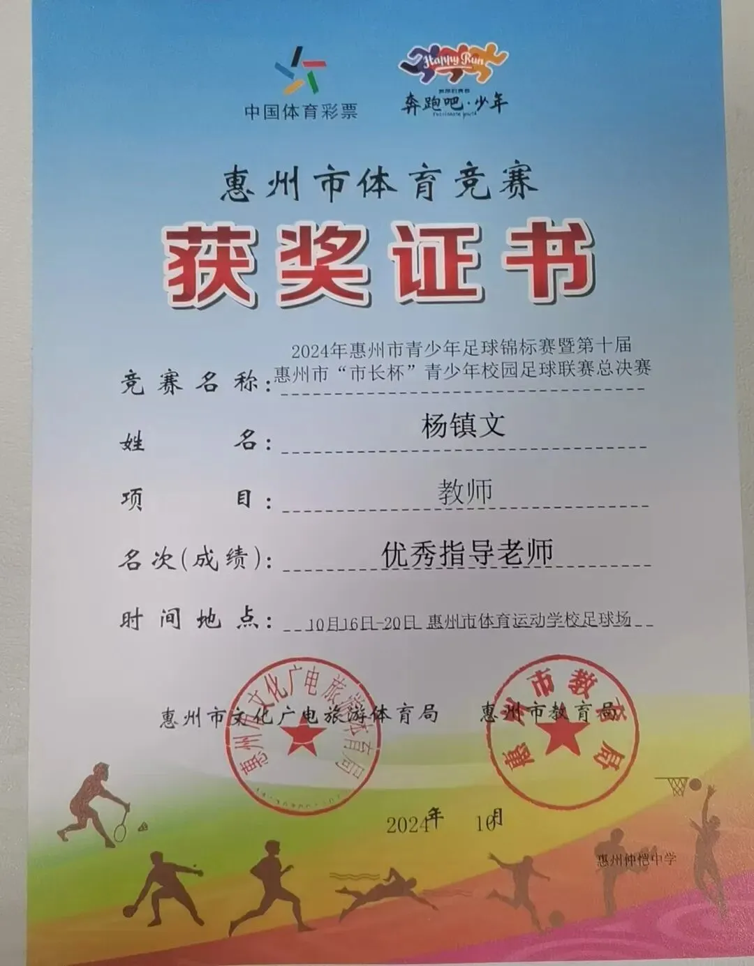 2024年10月20日,2024年惠州市青少年足球锦标赛暨第十届惠州市“市长杯”青少年校园足球联赛总决赛在惠州市体育运动学校落下帷幕。经过数轮激烈角逐,惠州仲恺中学高中女子足球队凭借其卓越的技战术水平和顽强的拼搏精神,成功摘得高中女子组桂冠,为学校赢得了荣誉。