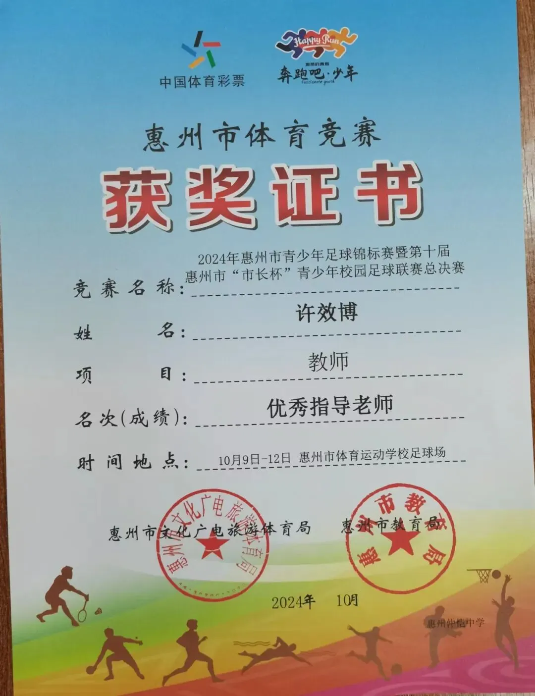 与此同时,惠州仲恺中学男子足球队也在此次赛事中展现了不俗的实力,经过艰苦卓绝的比赛,最终荣获高中男子组第三名。